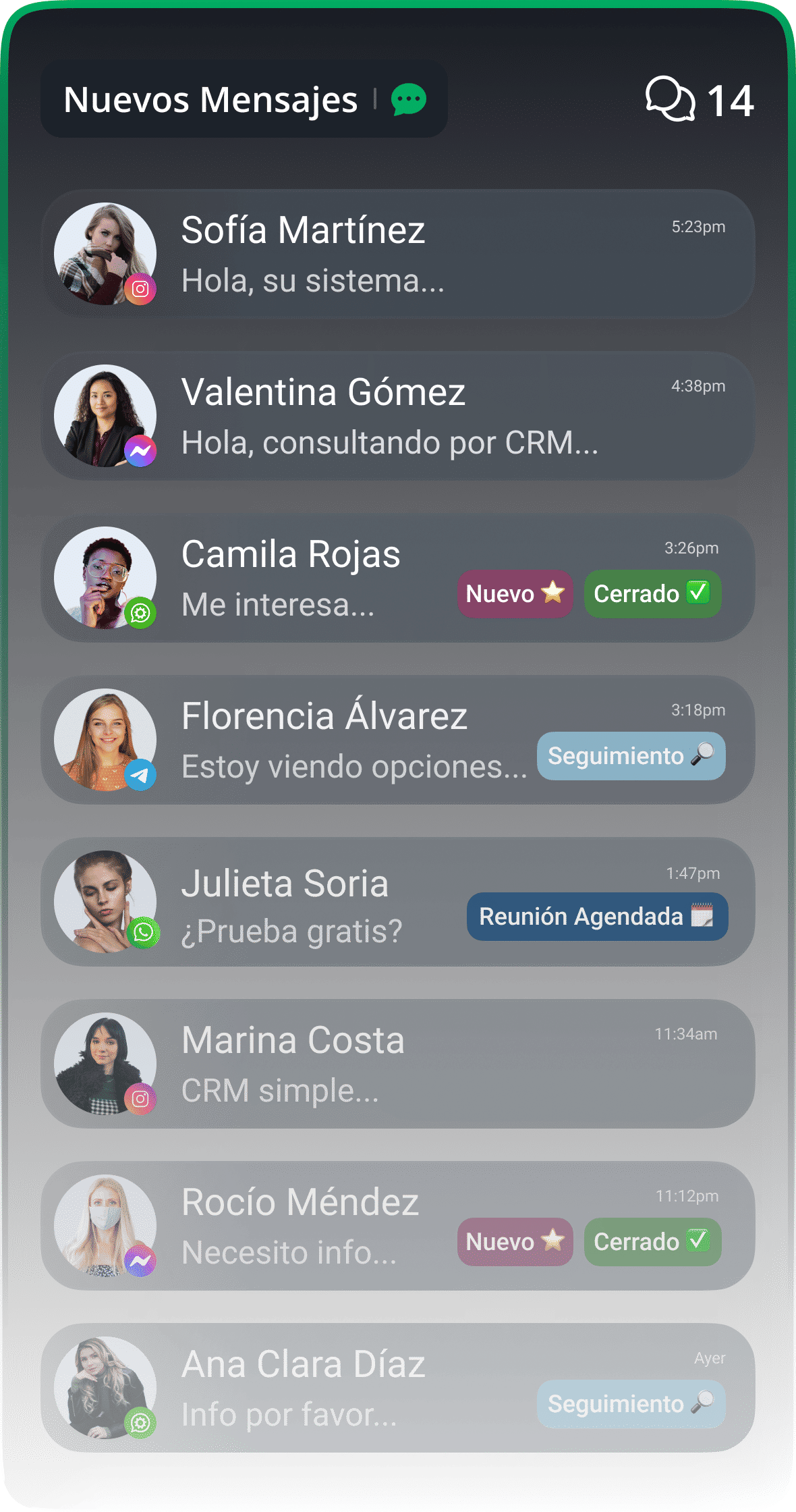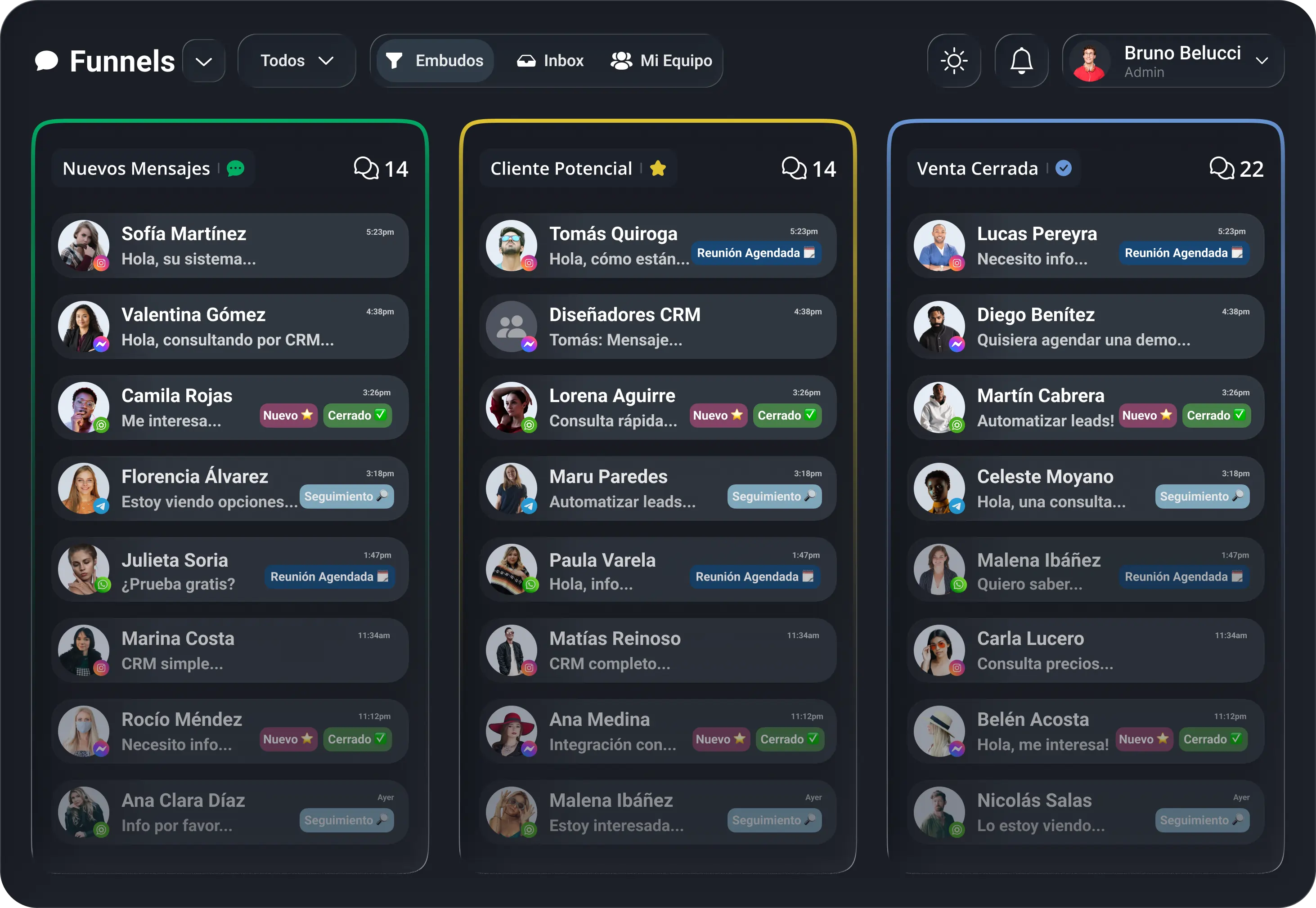 "Beast CRM unificó WhatsApp Business, Instagram DMs y Facebook Messenger. Ya no necesito saltar entre apps."